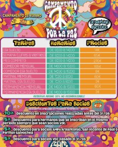 Volvemos un año más, llenos de energía, de ideas y de ganas de disfrutar de este verano inolvidable. Un verano en el que no solo nos reencontraremos con amigos de otros años, haremos manualidades y excursiones divertidísimas, sino que también trabajaremos por y para La Paz. Porque este año ha quedado lejos de ser un año de buenas noticias y alegrías y por ello queremos dedicar nuestro Campamento de Verano 2022 a La Paz, La Solidaridad, El Respeto, La Tolerancia, La Igualdad, El Compromiso, La Responsabilidad y la Empatía.