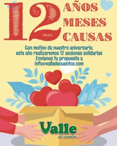 porque nadie mejor que vosotrxs para contarnos e imaginaros de que forma podemos ayudaros. Por ello os animamos a que residencias, colegios desfavorecidos, carreras solidarias, asociaciones (y todo lo que se os ocurra) nos mandeis vuestras propuestas a info@valledecuentos.com