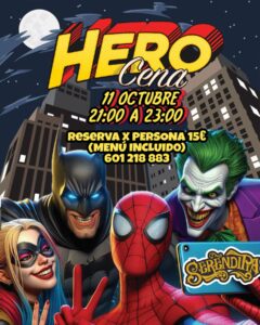 Durante las dos horas podréis disfrutar de una deliciosa cena en familia acompañadxs de tus superhéroes favoritos